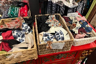 Vintage clothes, second-hand books, and hair bows.